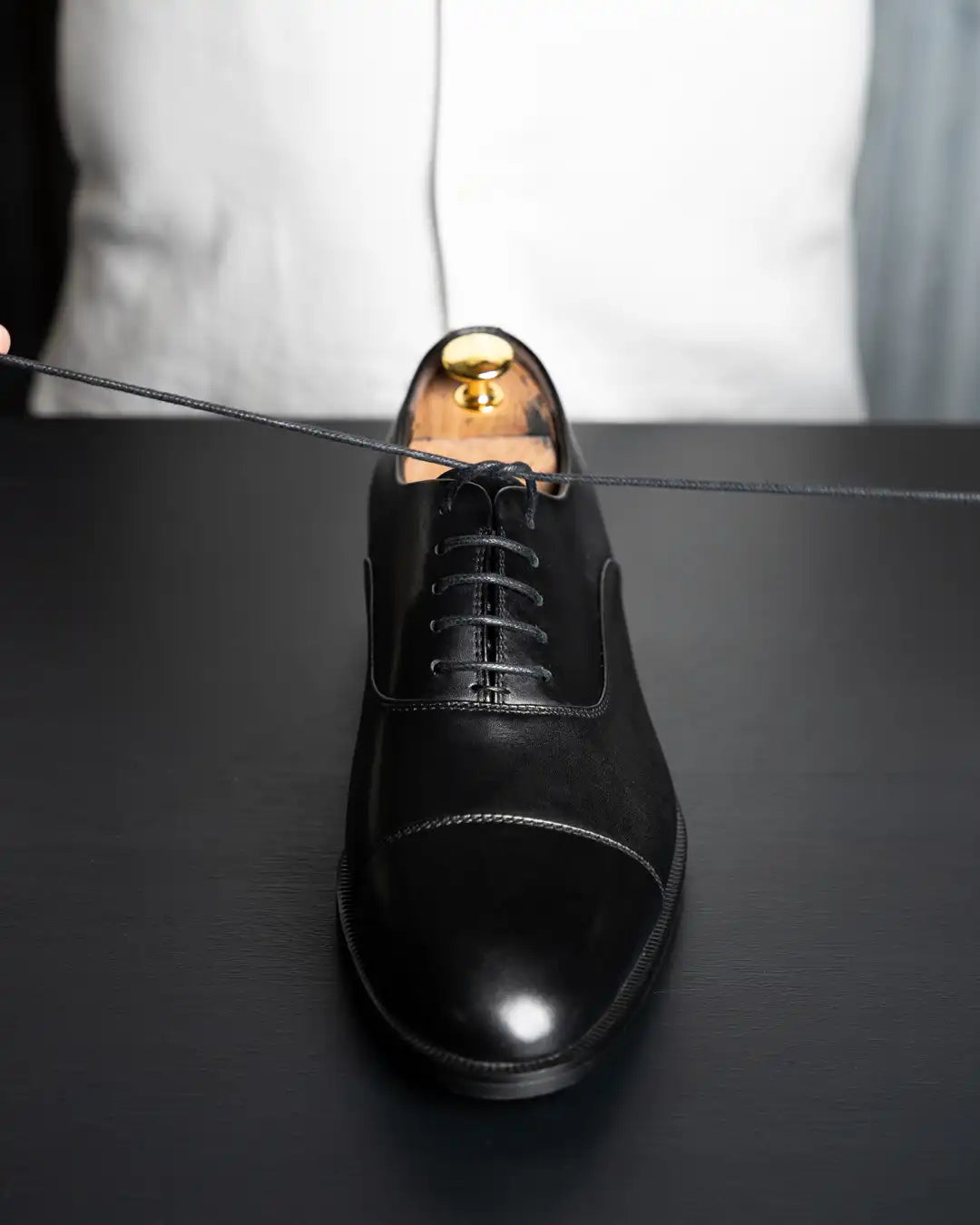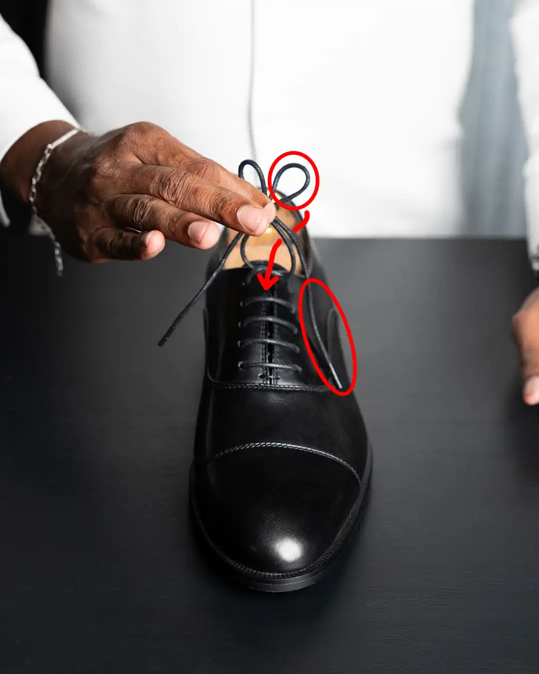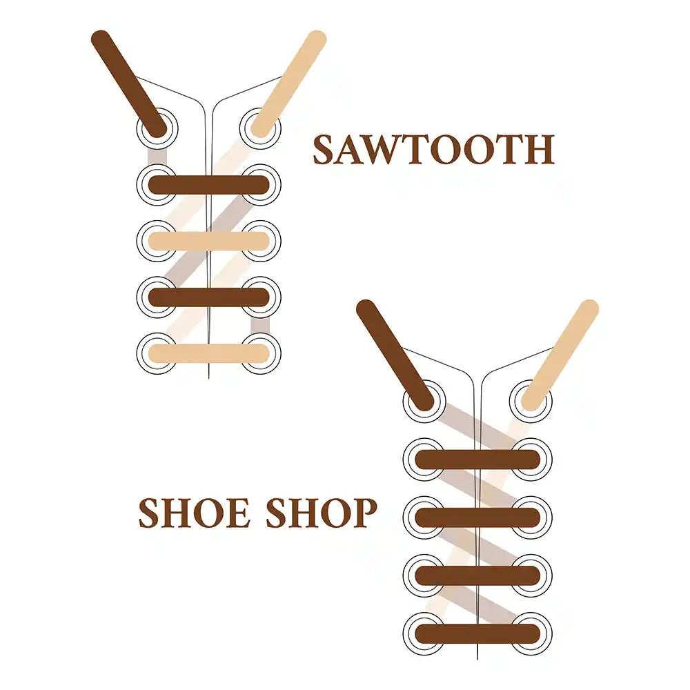 There are several ways you can lace your shoes. We recommend one of the methods shown here as it allows for the laces to remain horizontal after you tie them up, resulting in a cleaner and kempt look.